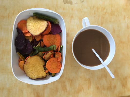 घटक | गाजर, भिंडी, मशरूम, शकरकंद की चिप, बैंगनी रबीश, ताड़ का तेल, नमक |