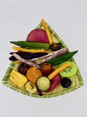 12 अलग-अलग सब्जियों और फलों से बना एक जीवंत और पौष्टिक नाश्ते का आनंद लें! हमारे वैक्यूम-फ्राइड चिप्स उन्नत कम तापमान वाली फ्राइंग तकनीक के कारण अपने मूल रंग, आकार और स्वाद को बरकरार रखते हैं। बिना किसी अतिरिक्त चीनी या परिरक्षकों के, यह स्वास्थ्य के प्रति जागरूक व्यक्तियों के लिए एक उत्तम अपराध-मुक्त नाश्ता है। चाहे आप ऑफिस में हों, सड़क यात्रा पर हों, या अपने बच्चों के लिए एक स्वस्थ नाश्ता ढूंढ रहे हों, यह मिश्रण कुरकुरापन और पोषण दोनों प्रदान करता है!
